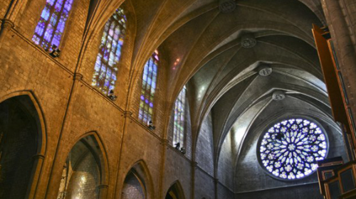 - Vidrieras y rosetón: El rosetón de Santa María del Pi, una copia exacta del original del siglo XIV, es uno de los más grandes de Europa, compitiendo con el de Nôtre Dame de París.