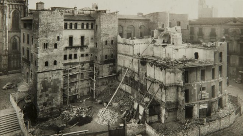 Reinvenciones modernas: En 1870, el edificio fue adquirido por el nuevo rico Josep Altimira, quien lo restauró y lo fusionó con la Casa del Degà. El arquitecto Josep Garriga dirigió estas intervenciones, creando el actual claustro y la fuente a partir de elementos originales y nuevos.