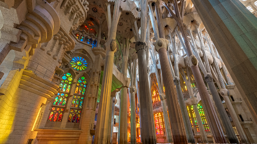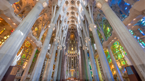 -Influencias naturales: Las columnas interiores de la Sagrada Familia se asemejan a troncos de árboles, creando un bosque de piedra en su interior.