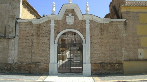 La fachada externa del patio de honor está realizada en ladrillo visto, con decoración de mármol blanco, y en el centro, un arco de medio punto sobre pilastras encuadrado por elementos similares. Una cornisa en línea quebrada bordea todo su perfil. En el centro se encuentra el escudo de Armas de Abellán, el cual consta de un manto del que pende el escudo de Carlos III.
