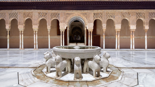 La Alhambra ha sido ciudad palatina, palacio de reyes y fortaleza, todo en uno. El conjunto es una construcción sorprendente: no tiene fachada principal, ni centro, ni un eje determinado. Edificios, torres, palacios, patios y jardines se van sucediendo de forma natural, como si la propia vida de sus habitantes hubiera ido diseñándolos.