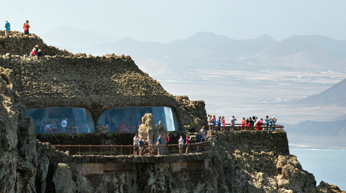 Situado en el norte de Lanzarote, el Mirador del Río es una obra maestra arquitectónica diseñada por César Manrique, enclavada a casi 500 metros sobre el nivel del mar en la cima del Risco de Famara. Desde este punto privilegiado, se disfruta de una de las vistas más espectaculares de las Islas Canarias: el estrecho de El Río, que separa Lanzarote de La Graciosa, el mayor islote del Archipiélago Chinijo. Los visitantes quedan maravillados por los paisajes volcánicos de La Graciosa, los colores ocres de su terreno y la inmensidad del mar que se funde con el cielo.