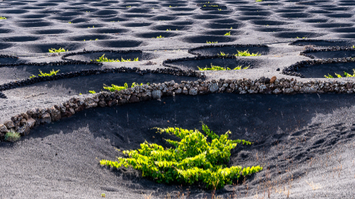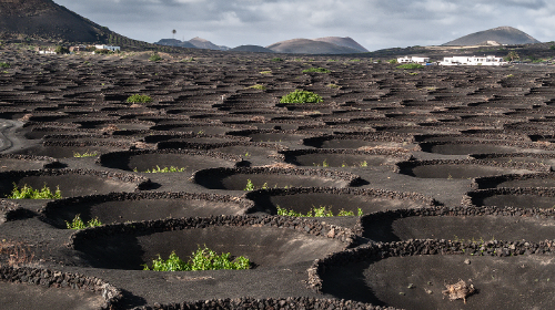 -Los viñedos de La Geria están tan bien integrados en el paisaje que parecen haber sido diseñados como una obra de arte, en lo que algunos llaman un "land art" natural.