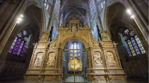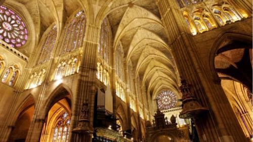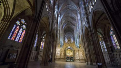 Se construye sobre la antigua Catedral románica, que a su vez ocupaba los solares del Palacio de Ordoño II y las termas romanas. Comienza su construcción hacia el año 1205, es de estilo gótico y está inspirada en la Catedral francesa de Reims, reducida su planta en 1/3.