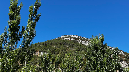 Ya de vuelta, cuando llegues a la torre de alta tensión, podrás elegir entre volver por el mismo camino y bajar a Oña, o aprovechar que has ganado altura para cruzar el monte, en un paseo "sube y baja" a través de un camino forestal, que te permitirá disfrutar de nuevas vistas de la parte de Santé, para bajar a la carretera nacional y volver a Oña por el bonito paseo que transcurre por el lateral del río, por el desfiladero de la Horadada.