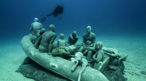 -La escultura Balsa Lampedusa es un homenaje a la crisis de refugiados en Europa, representando una embarcación llena de personas buscando refugio.