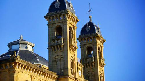 De estilo renacentista moderno, este precioso edificio que preside los jardines de Alderdi Eder (que significa lugar hermoso en euskera) no siempre ha sido el consistorio de la ciudad. El lugar que ocupa fue un campo de maniobras del ejército, que más tarde pasó a parque recreativo y de ahí…a… espera… cierra por un momento los ojos… e imagina un salón… donde suenan…